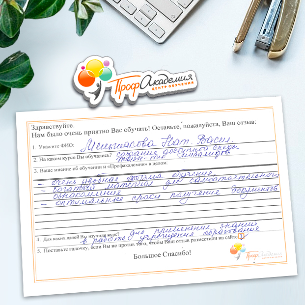 - Очень удобная форма обучения - Богатый материал для самостоятельного ознакомления - Оптимальные сроки получения документов